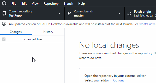 If GitHub is not on the Changes view, remember that you can get there by choosing the “Changes” tab in the top left area.