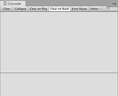 At first, you might not notice anything. Your debug text will be printing to the Console window, but this might not be visible in Unity. You can add it to your Unity setup by going to the menu at the top of the screen and choosing Window > General > Console. Attach this window somewhere on the screen where you won’t lose it – you’ll need it often when programming.