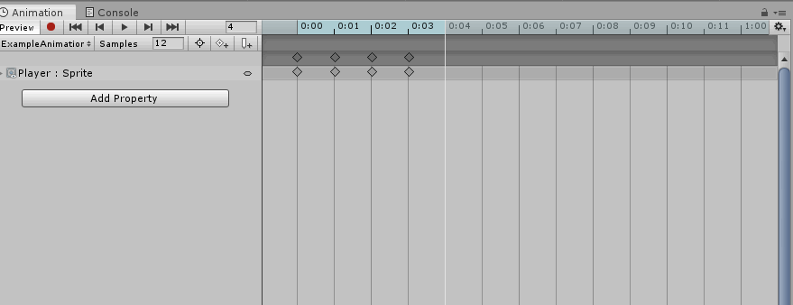 The timeline is the right-hand part of the Animation window. This is like a timeline in Adobe Animate or Premier – it shows how the animation will change as time goes on.